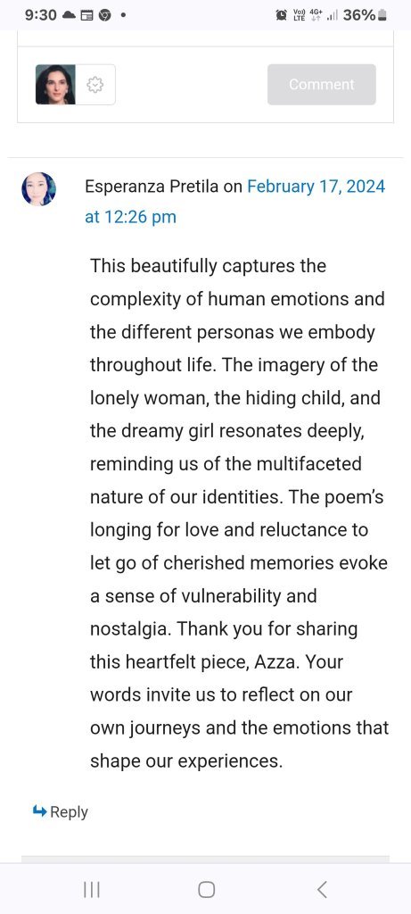 From my wordpress blog, on February 17, 2024 my poem “Simply Me” received this fabulous review from Ms. Esperanza Pretila